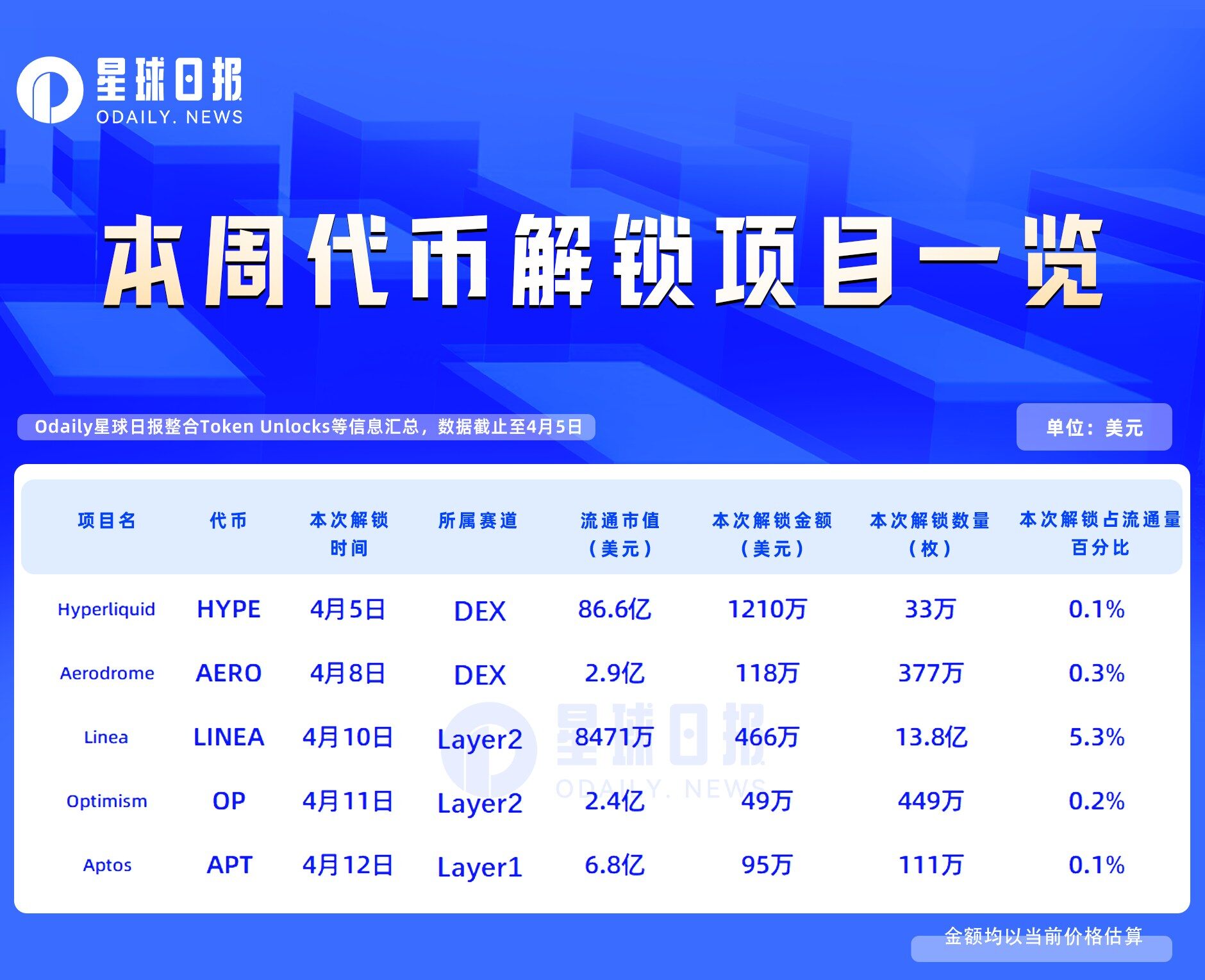 一周代币解锁:LINEA解锁达流通量5.3%代币