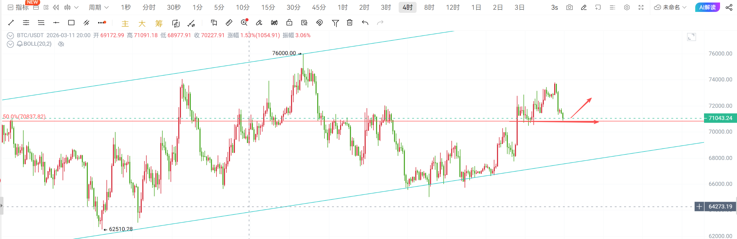 大饼70300-70800做多,目标71800-73000,69500下方损;
