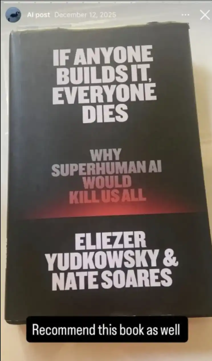 在袭击发生前四个月,他还向自己的关注者推荐了尤德科夫斯基(Yudkowsky)和索亚雷斯(Soares)的文章《如果有人把它造出来,我们所有人都会死》。