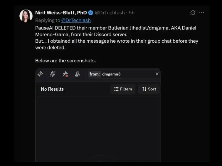 PauseAI 已经从他们的 Discord 中删除了他的相关发言。