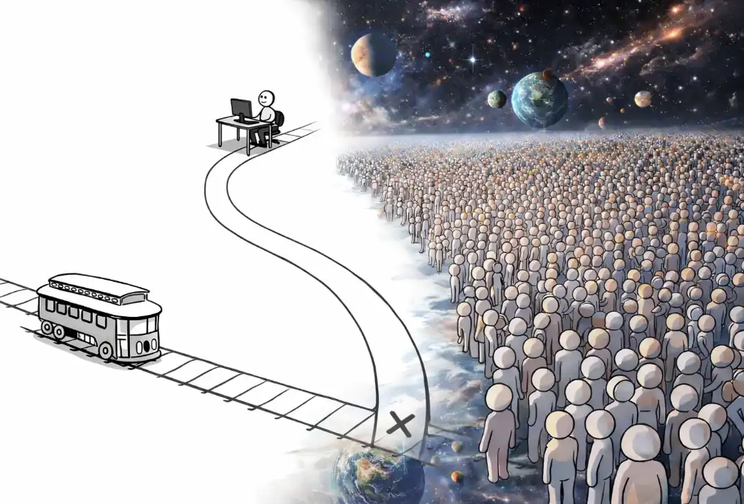 本文回顾了 AI 末日论者社群内部的演化路径:从「纯化螺旋」推动风险判断不断升级,到对技术建造者的道德审判,再到将复杂现实简化为「电车难题」的决策模型。这些看似理性的推演,最终汇聚成一种自洽却危险的思维框架:只要结果被定义为「拯救人类」,手段便可以不断扩展。