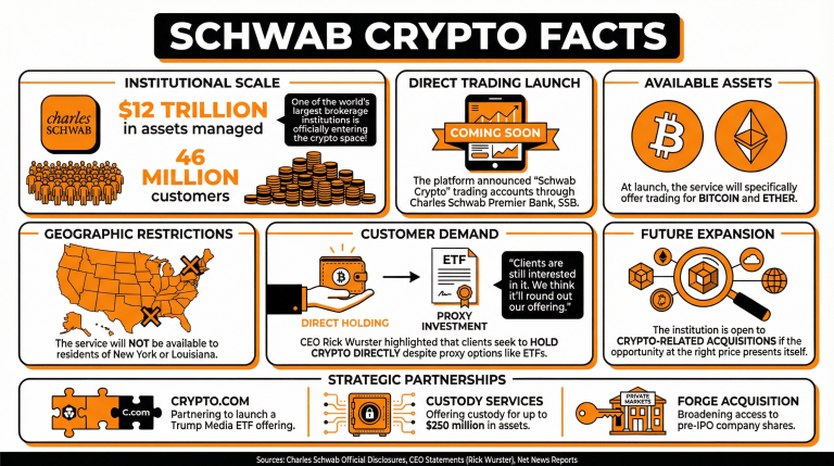 • 查尔斯·施瓦布正在为其4600万客户推出直接的比特币和以太坊交易。