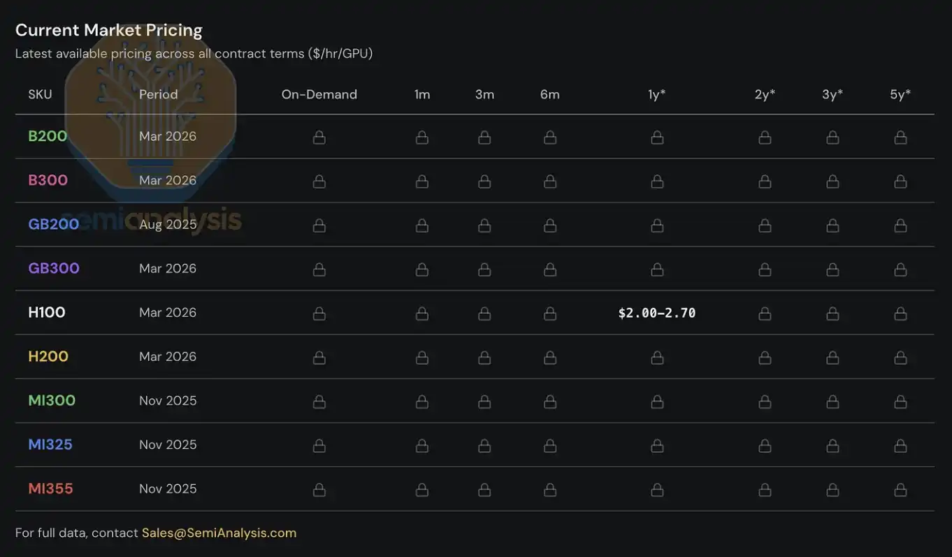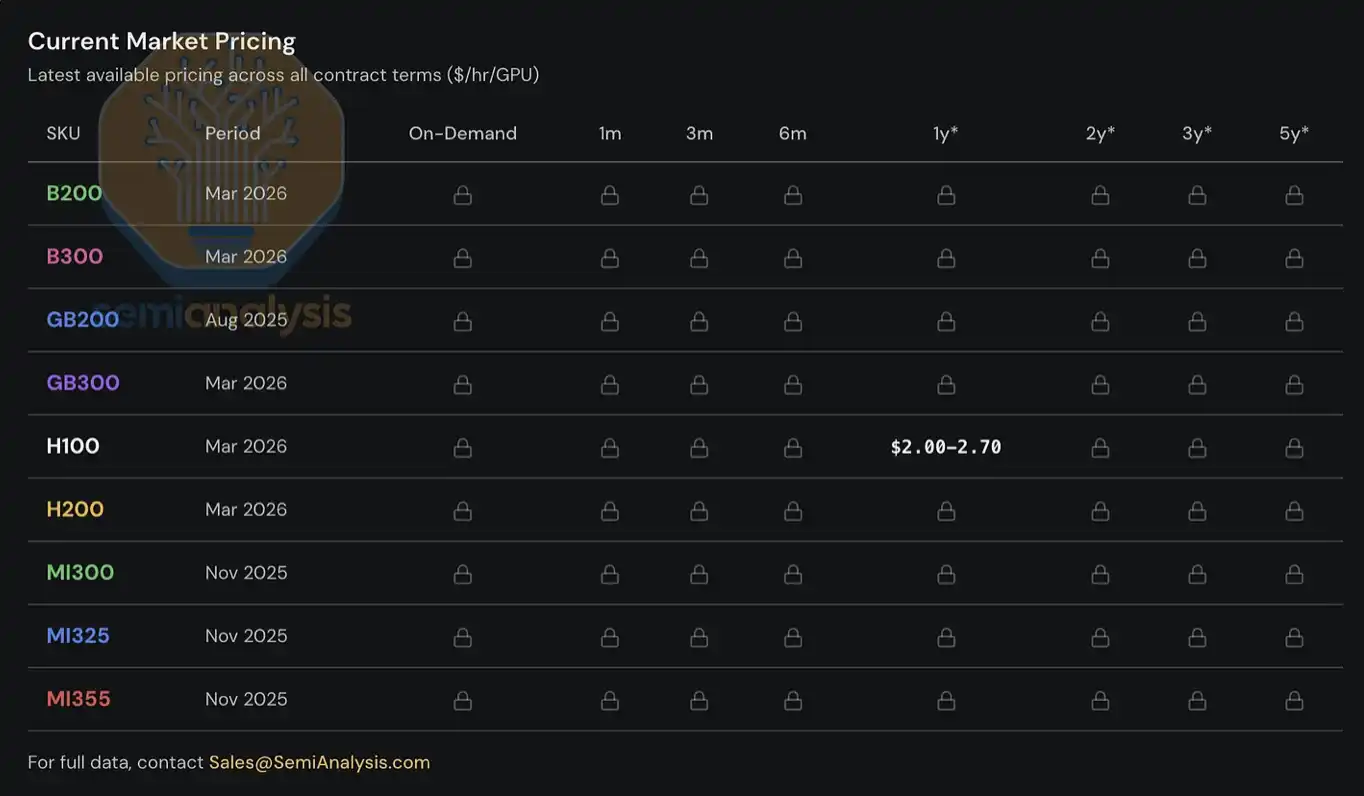 SemiAnalysis H100 一年期租赁价格指数发布