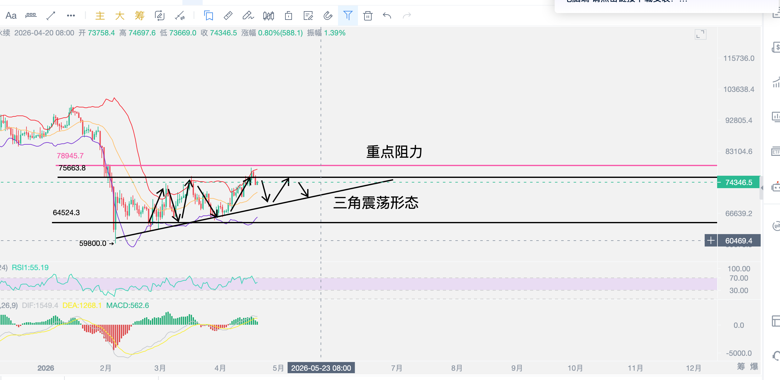 76000三次上探未破,这个位置还能维持多久才会破?