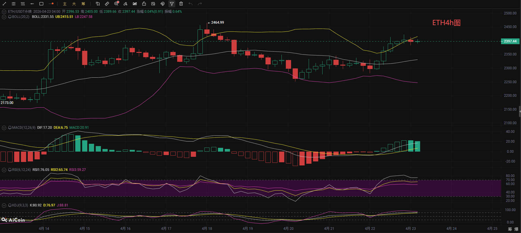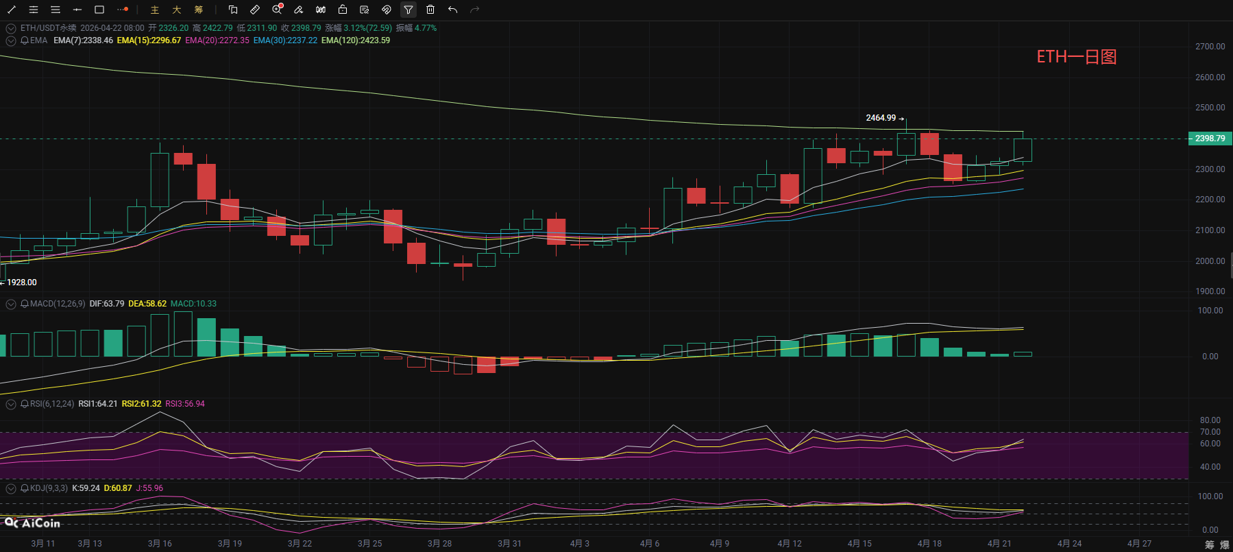 币海逐浪:4.23以太坊(ETH)行情分析参考: