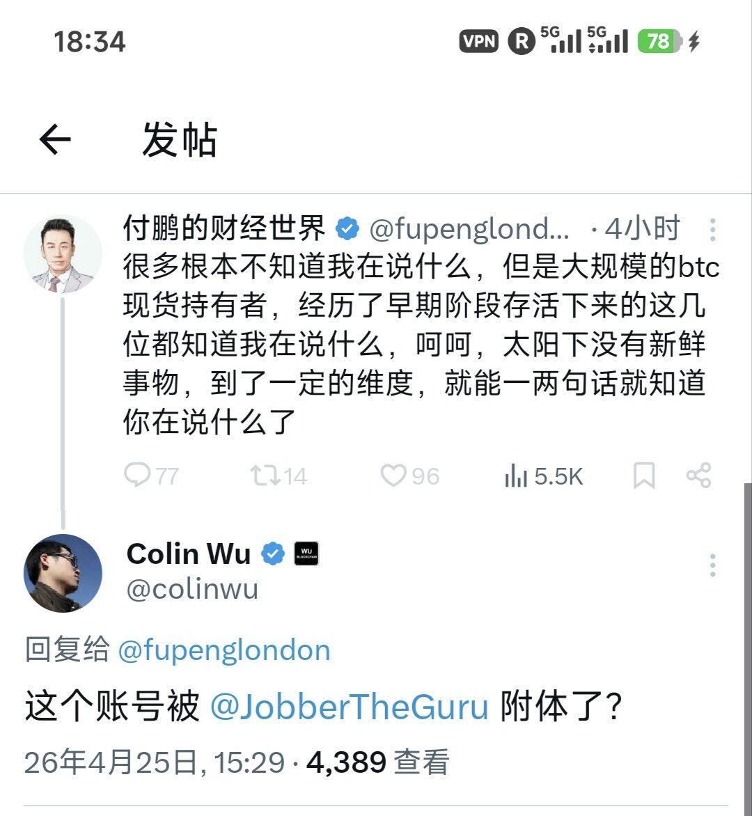 付鹏在这次演讲中所展露的高姿态,或已经这次和加密 KOL 们之间的冲突埋下了伏笔。4 月 25 日,付鹏发文认为比特币永续合约交易的资金费率与传统金融黄金现货交易的递延费用类似,这番言论本无任何异样,但付鹏后续又补充称,很多人根本不知道他在说什么,只有早期的大规模 BTC 持有者和到一定维度的人才懂他的意思。