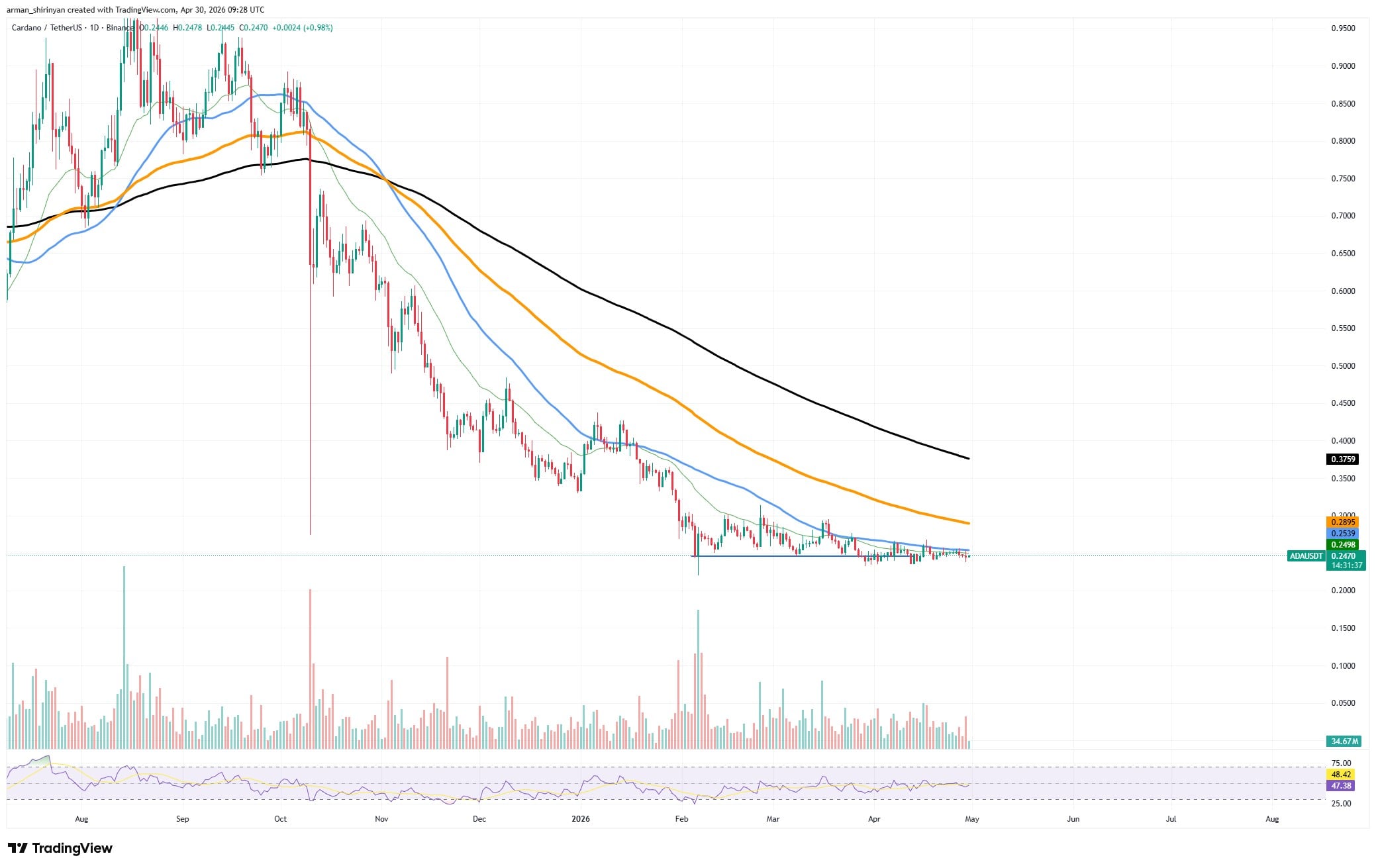 由TradingView提供的ADA/USDT图表