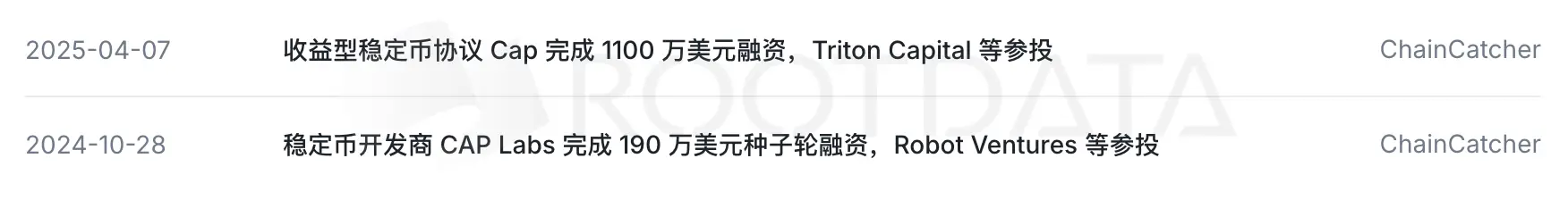 据加密资产数据平台 RootData 显示,Cap 去年四月完成 1,100 万美元融资,由 Triton Capital 等参投。随着 MEGA 预计于 2026 年 4 月 30 日进行 TGE,市场普遍预期 Cap 将成为 MegaETH 生态中首批发币的重点项目之一。